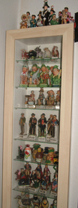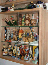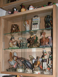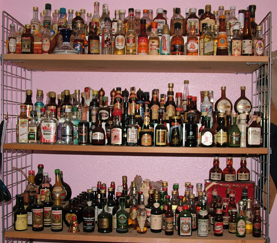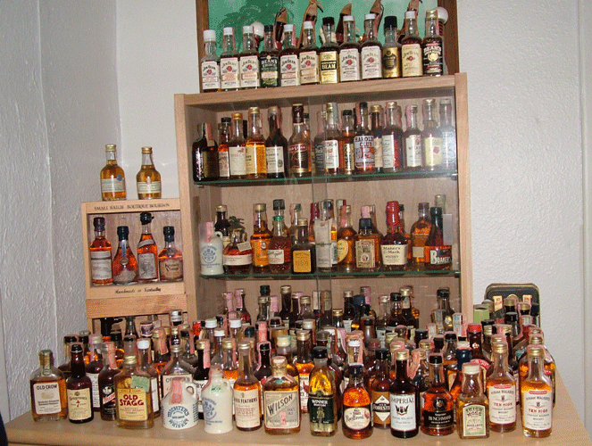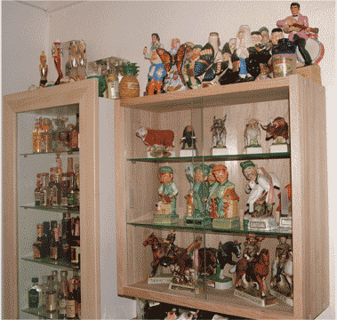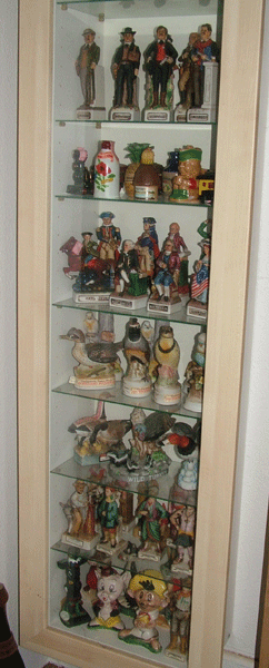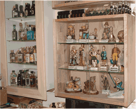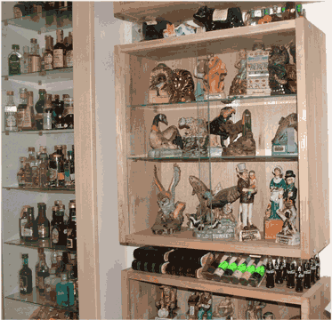 I try to concentrate on collecting Scotches (I have over 300), Vodkas (over 100), tequilas (over 100), Rums (about 75), and other Whiskies (over 200). About 200 of my bottles are figurals with the rest being straights. I still pick up other bottles if they look interesting to me. I know at some point I will try to specialize a little more but so far the collection hasn't gotten to that point yet. (Translation: I still have room for more) |